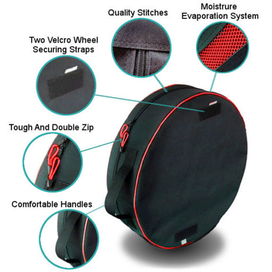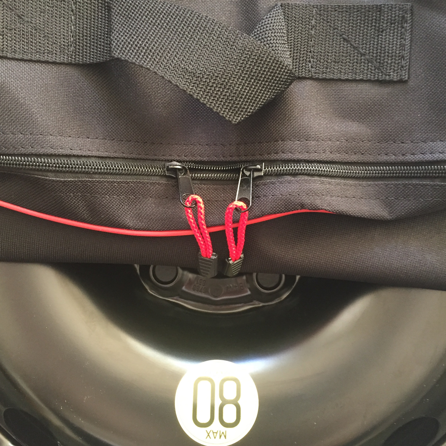 Wielhoes: opbergzak/draagzak van sterk nylon.